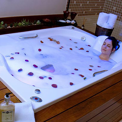 Banho de leite com óleos essenciais de palmarosa e pétalas de rosas. Esse banho além de nutrir, hidrata a pele, e associado à ação dos óleos essenci...